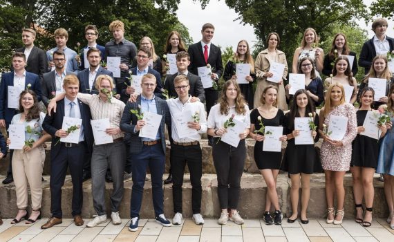 Die 34 Abiturientinnen und Abiturienten diesen Jahres nahmen glücklich ihre Zeugnisse entgegen. Abitur mit Hindernissen