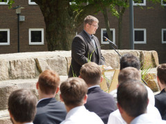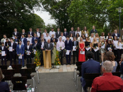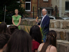 Herrn Krettek ermutigte die Abiturient:innen in seiner Rede während der Abiturfeier dazu, offen auf das Leben zuzugehen, das sie nun erwartet und die Freiheiten zu nutzen sowie die kommenden Herausforderungen anzunehmen. In diesem Zusammenhang machte er ebenfalls deutlich, dass die Bewahrung unserer im Grundgesetz verbrieften demokratischen Rechte und Pflichten gegen die Anwürfe und Angriffe der Antidemokrat:innen, vor allen Dingen des rechten Randes, unabdingbar sind. Er sprach den Abiturient:innen Mut zu, um dafür einzustehen und sich ebenso für wahre Gleichberechtigung und den Schutz der Umwelt einzusetzen und so unserer gesamten Gesellschaft zu helfen. Herr Krettek beendete seine Rede mit den Worten des verstorbenen französischen Schauspielers Fernandel, der sagte: