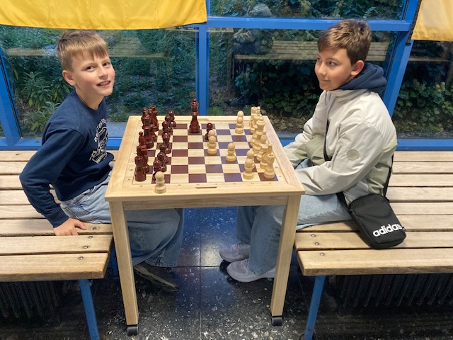 Pünktlich zum Herbstbeginn wird die Pausenhalle des Scharnhorstgymnasiums auch ein Stück bunter. Dank einer großzügigen Spende des Fördervereins des SHG und des handwerklichen Könnens von Herrn Schönfuß, unserem Hausmeister, konnten drei neue große Schachtische aus Echtholz bei den Sitzbänken aufgestellt werden. Diese ersetzen die alten in die Jahre gekommenen Schachbretter. Bereits am ersten Morgen war der Andrang der Spielenden schon vor 7:30 Uhr riesig. Die Kinder und Jugendlichen waren begeistert; zum einen von acht bis 15 Zentimeter großen Figuren, zum anderen davon, dass an den neuen Tischen neben Schach auch Mensch-ärgere-dich-nicht und Mühle gespielt werden können. Auch die alten Spielbretter finden weiter Verwendung und bleiben im Einsatz. So kann der Spielspaß in den Pausen und vor und nach der Schule mehr als verdoppelt werden.