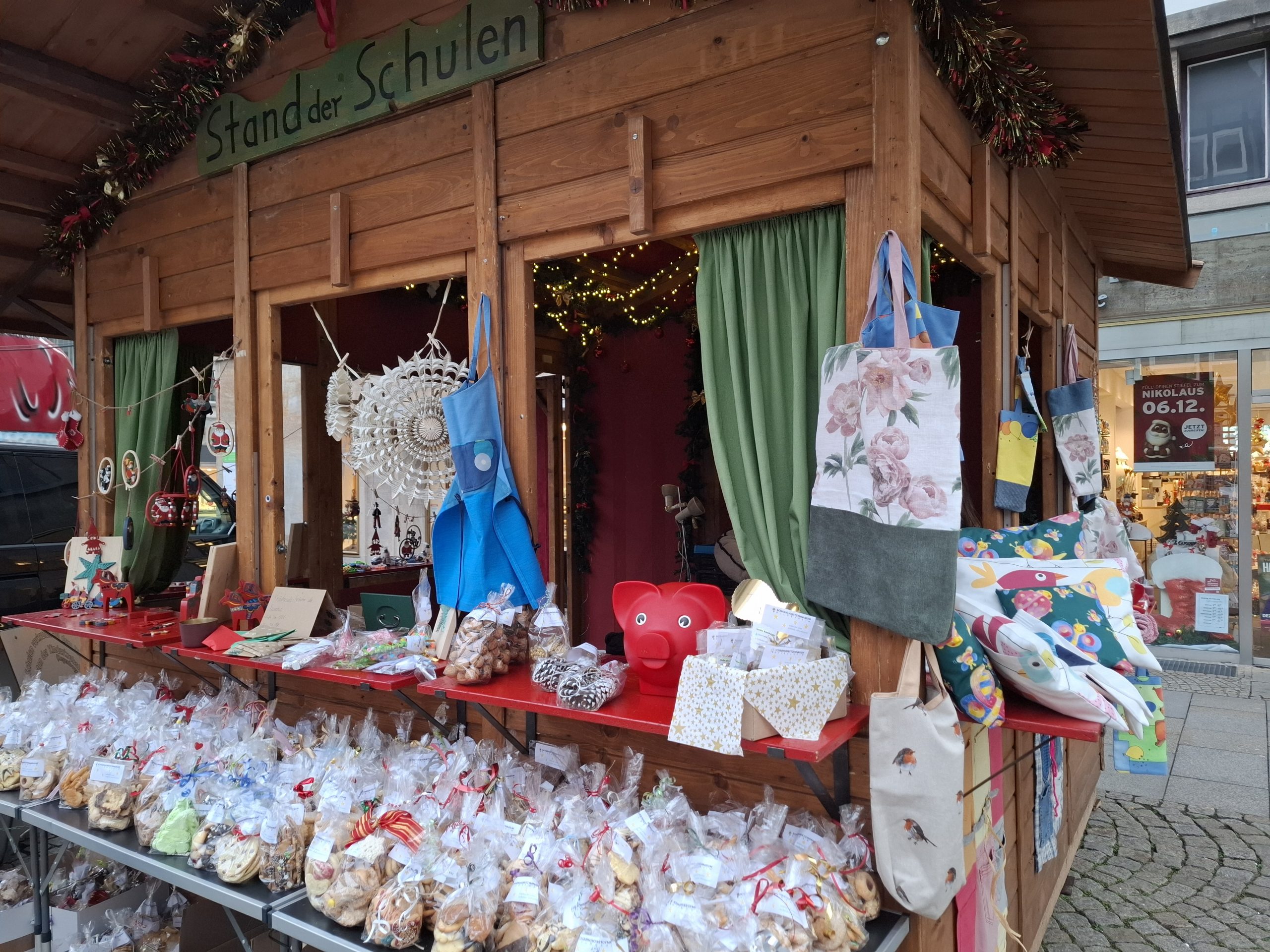 ich möchte mich bei euch und Ihnen ganz herzlich für das große Engagement und die Unterstützung für den diesjährigen Stand der Schulen bedanken, der am 04.12.2025 stattgefunden hat. Mein besonderer Dank gilt natürlich den Schülerinnen/Schülern und engagierten Eltern des 7. Jahrgangs, die beim Auf- und Abbau geholfen und beim Verkauf am Stand selbst beteiligt waren und so dieses großartige Projekt unterstützt haben. Auch Frau Lösche und Frau Hartmann gilt mein besonderer und persönlicher Dank für ihre Unterstützung bei der Durchführung des Projekts. Ein großer Dank gilt auch ganz besonders den fleißigen Spenderinnen und Spendern, die im Vorfeld innerhalb und außerhalb der Schule gebacken, gebastelt, genäht und gebaut haben.
