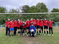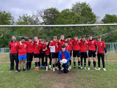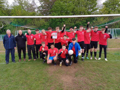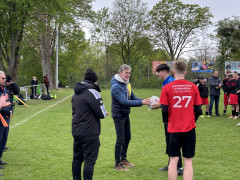 In einer spannenden Finalpartie ging das Gymnasium Himmelsthür zunächst mit 1:0 in Führung, doch die Jungen des SHG blieben konzentriert und schafften über einen wunderschön ausgespielten Konter den Ausgleich zum 1:1. Als am Ende der Spielzeit kein Sieger feststand, ging es in das Elfmeterschießen. Hier zeigten die Schützen des SHG ihre Treffsicherheit und Nervenstärke! Während beim Gymnasium Himmelsthür der dritte Versuch daneben ging, verwandelten beim SHG alle fünf Schützen ihre Elfmeter sicher und setzen sich dadurch erstmals die Krone auf. Der Jubel über den sensationellen Turniersieg war riesig und die Mannschaft wurde von der Turnierleitung entsprechend geehrt. Damit darf das SHG in diesem Jahr als beste Mannschaft im Bezirksentscheid am 16.05.2024 in der 96-Akademie in Hannover für den Kreis Hildesheim antreten und bedankt sich ganz herzlich bei den Ausrichtern des Turniers!