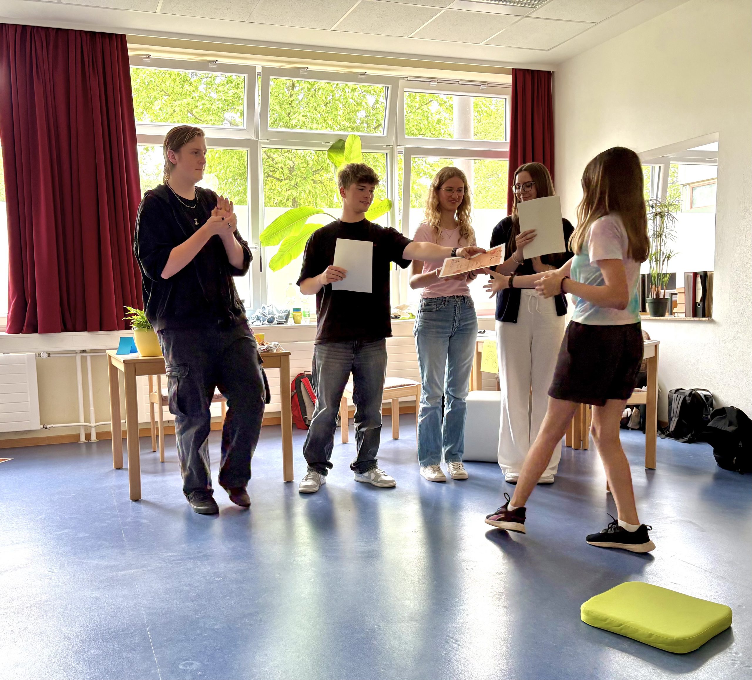 Am Mittwoch, den 25.Juni, fand der diesjährige Spanisch-Vorlesewettbewerb statt. Aus organisatorischen Gründen trat (statt des 7. .Jahrgangs) der 6. Jahrgang an. Am Montag zuvor wurden elf Kandidat*innen im Kursverbund mithilfe der Lehrkräfte und Teilen der Jury ausgewählt. Zwei Tage später trafen sich die Kandidat*innen in der Schülerbibliothek und lasen der Jury zuerst einen bekannten Text und danach einen Fremdtext vor. Trotz des Fremdtextes und der Zuschauer steigerte sich jede*r und ließ sich die Aufregung kaum anmerken. Nach langer Diskussion traf die Jury eine Entscheidung. Die besten fünf Schüler*innen erhielten kleine Geschenke und Urkunden und auch die restlichen Teilnehmer*innen des Wettbewerbs bekamen eine Urkunde. Alle Teilnehmer*innen überzeugten mit guter Betonung, toller Aussprache und viel Mut auf dem Lesestuhl. Die elf Teilnehmer*innen des diesjähriges Wettbewerbs waren: Greta, Linda, Yasmin, Tim, David, Melak, Daniel, Lina, Andrej, Fiona und Leo.